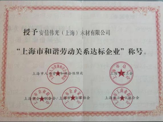 近日,安信地板被上海市人力资源和社会保障局、上海市总工会、上海市起上海市总工会、上海市企业联合会/上海市企业家协会、上海市工商业联合会联合授予“上海市和谐劳动关系达标企业”称号。