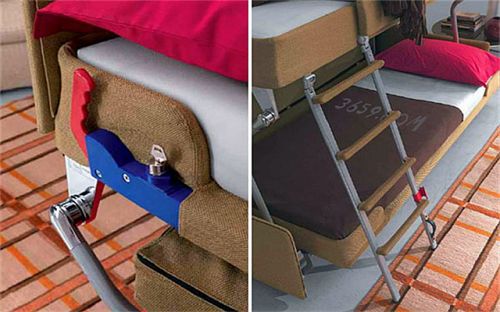 当不需要双层的时候,可以随意转换成单人状态,可移动床垫、小楼梯、和包围着上铺的屏障不需要拆卸,都完全是可以隐藏在平时的沙发中,因此收纳起来也非常方便,这款沙发对于蜗居小空间生活的人们来说,是一款非常便利的家具用品,更多便捷生活的创意家居可到bET.365官方查看。
