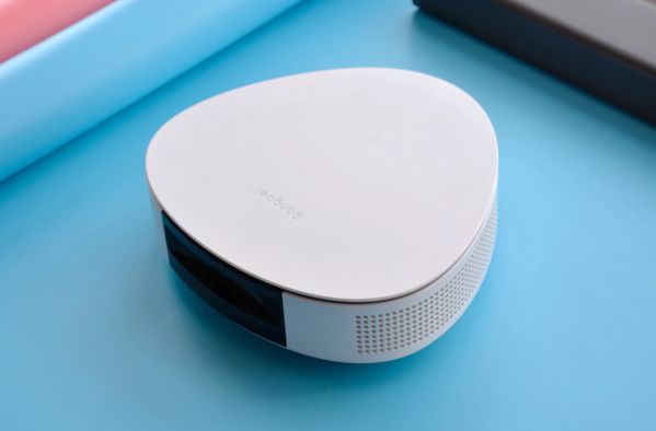 从外形上看,二者相差不多,都采用的是扁圆形设计,这样摆在家中的时候更像是一件装饰品。同时从配色上可以看出,当贝投影D1采用的是黑白熊猫配色,更加符合简洁的智能家居设计。