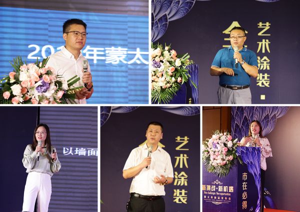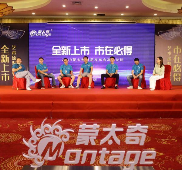 现场,蒙太奇高层领导携6位优秀经销商代表,针对当前内墙装饰行业、店面运营管理、艺术涂料行业发展趋势等问题。以问答形式,与在场经销商家人互动交谈各自经验。