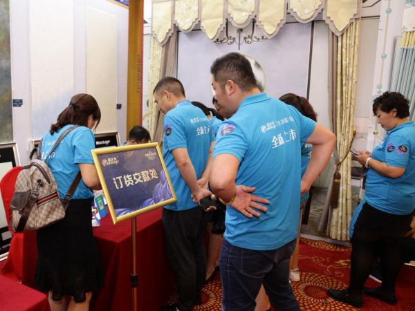 蒙太奇销售总监柴总介绍新品订货政策后,经销商被优惠政策吸引,一番衡量后纷纷争相下单。丰厚的订货政策,互动抽奖环节,将订订货会推向一个又一个高潮。