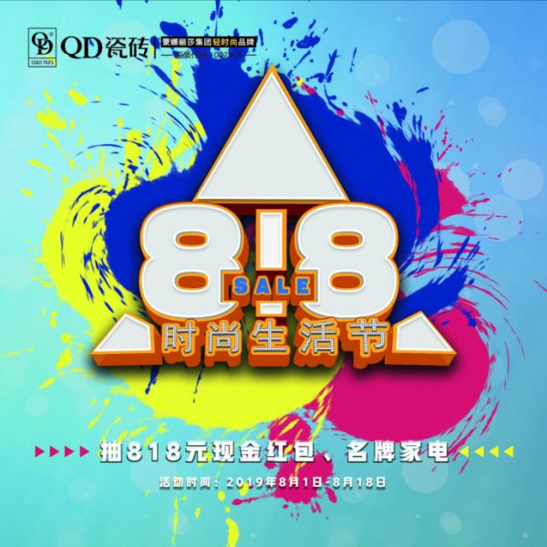 8月1日-8月18日,QD瓷砖“8.18时尚生活节”与夏同热,与众同欢,全国各大专卖店联动,多种优惠齐上阵。