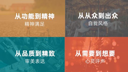 回顾改革开放40多年来,中国企业也经历了“产品为王”、“渠道为王”的双驱动时代;随着互联网、移动互联的普及发展,中国已全面进入到消费升级时代。简单来说,就是过去我们买东西是为了产品本身价值买单,而消费升级是为产品的附加值买单;除了关注产品本身的功能和品质,在产品使用体验过程里是否愉悦、审美是否得到满足等追求。