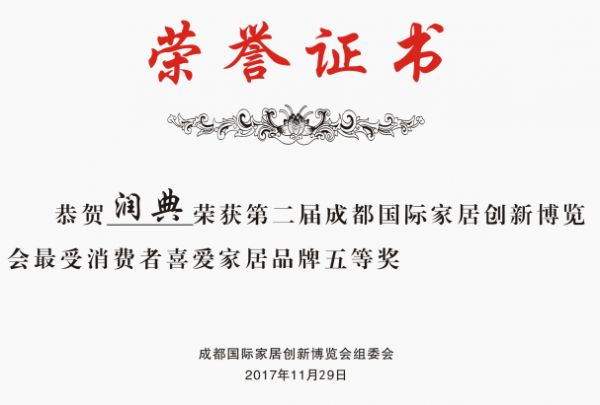 多年来,香港润典床垫深得百姓口碑,优质的产品、专业的服务,赢得了社会各界的认可。现已通过“质量管理体系认证”、“环境管理体系认证”、“职业健康管理体系认证”、“中国环保产品认证”、“中国绿色材料认证”等众多品牌认证。并荣获华西都市报、成都工商局共同颁发的“诚信大牌” 称号; 与万科地产签署战略协议,成为万科地产西南唯一供货商;签约“四川电视台”特约赞助商;与泰国最大乳胶生产企业【泰国普吉府查龙公司 JUNE LATEX】达成战略合作伙伴关系;成为“中国家商联协会 西南区理事长”多项殊荣,也是四川省家具进出口商会会员单位。