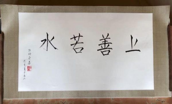 路,并非不可改,但道不可移。当笔者看到那些笔墨柔润有力,形态俊俏飘逸,散发浓郁雅韵的字体时,仿佛读出了“上善若水”这四个字。