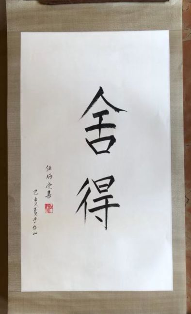 伍炳亮先生的字,带有浓厚的传统书法气韵。可是再一细想,这种分类,把伍炳亮看窄了。其实他的字哪里仅仅是书法。他写的大幅《舍得》,又何止于《舍得》。我们如果只注意他的运笔,他的结构法度,他对字形的把握与驾驭,就不足以了解《舍得》何以成为《舍得》。