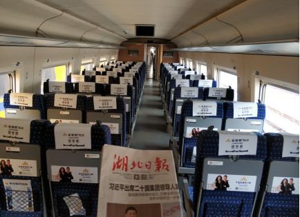 高铁媒体与其他媒体相较而言,其封闭性、迫视性更强,能够深度影响受众,并形成口碑传播效应,高铁列车媒体更被誉为户外的“CCTV”。作为高铁上到达率最高的媒体形式,列车车厢广告从车头到车尾,矩阵排列,全面锁定全车受众,一对一近距离、长效覆盖消费者视角,到达率高达93%,实现品牌深度曝光、精准传播。