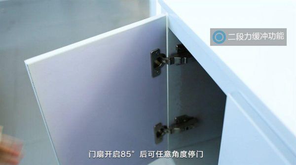 当开启时85°以后将任意角度停下,这样,你就不用担心开门力气太大,柜门撞击柜边的物品。