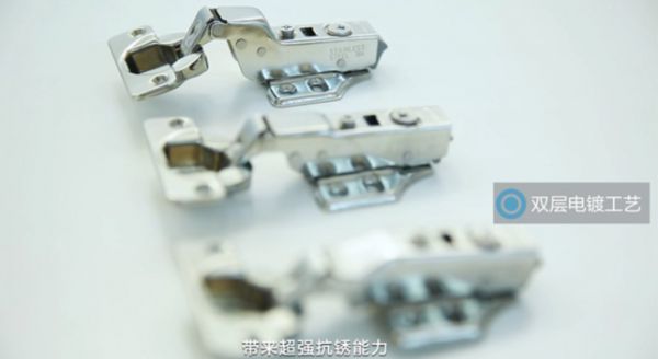 除了以上可以在短时间内直接体验到的,顶固的铰链还特别长寿,采用自动化连续冲压一次成型,虽然在工艺难度和成本上,都相对较高,但可以很好地保护表面层不受破坏,长久保持光亮地质感,超强抗锈!这种“有始有终”的态度,孰诚可贵。另外,还配对了双层电镀工艺,先镀铜后镀镍,大大提高了腐蚀性,陪着柜子“天荒地老”,它却坚固、顺畅如新!