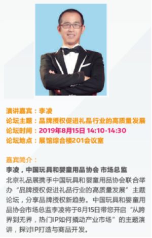 在本次论坛上,中国玩具和婴童用品协会市场总监李凌先生将为大家带来" 从跨界到无界,热门 IP 如何撬动产业市场 " 的主题演讲,分享品牌授权新趋势,探讨如何进行IP打造与商品开发。