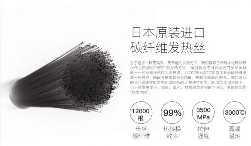 作为目前最新型的地暖,Misora碳纤维地暖,采用日本原装进口碳纤维,能瞬间将电能转换为热能,热转换率高达99%!不再需要浪费数小时等待预热,更无须24小时不间断运行,从开启到达稳定工作温度仅需30分钟,真正的实现即开即用。