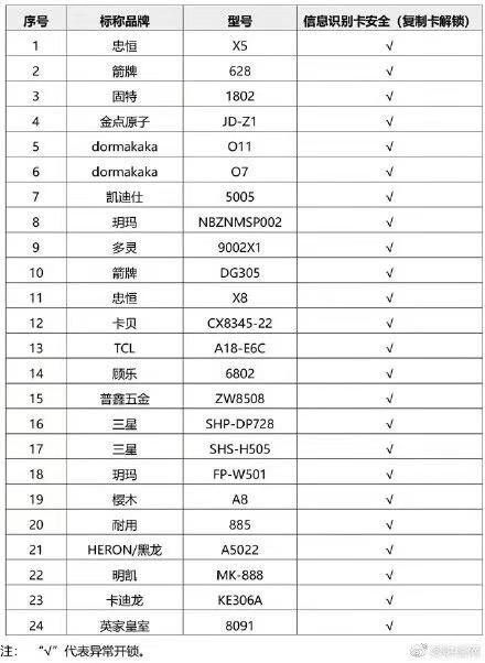 经过以上测试,38把智能门锁样品中,有30把样品可靠性差;8把样品EMC电磁兼容试验存在异常反应;6把样品极低温-40度环境下无法解锁;在安全方面的测试中,有24把样品的IC卡钥匙可被破解复制,14把智能门锁样品宣传具有活体指纹功能,实测并不具备此功能;32把样品可用制作的假指纹解锁!
