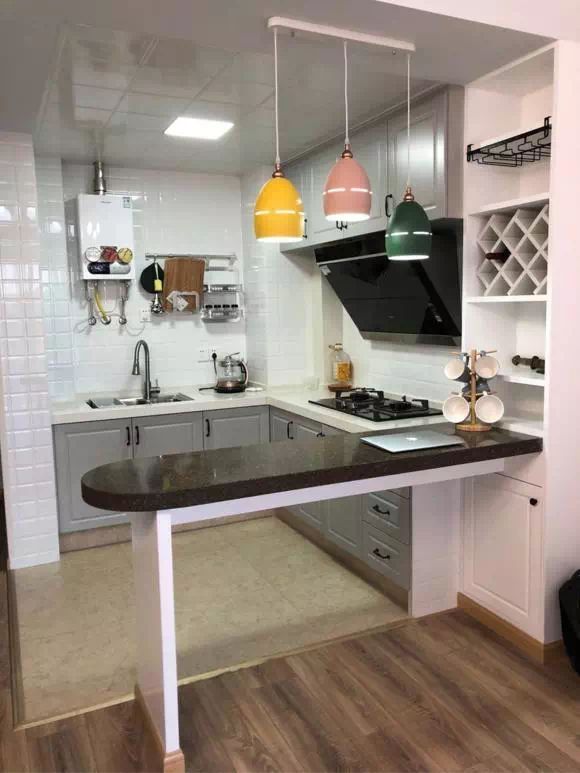整个家被夸最多的地方,就是厨房!粉粉的小调调非常可爱,加上外面的小吧台显得特别温馨,小吧台很实用,我们一家也经常在这吃便饭和下午茶之类。