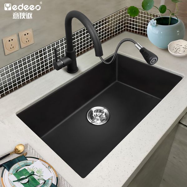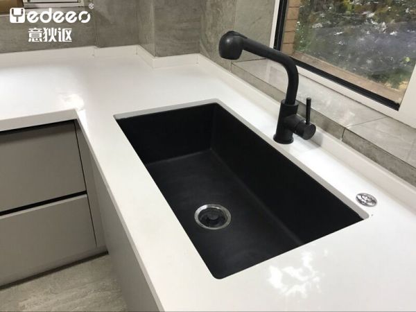 黑色石英石水槽是最常见、最受人喜欢的颜色。百搭台面,给人透出稳重,简约的感觉,