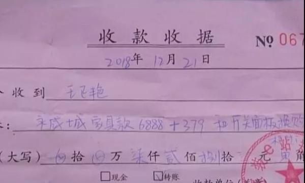 王女士说,2018年3月17日在郑州某装修公司签的装修合同,其中有一项活动是6888元抵18888元,到他们的一个平台上购买家具。2018年12月21日交的钱,一个茶几、一个电视柜、两张床,原本定的38天内送货,大半年过去了,就只到了两张床垫,家里床都没有,根本没办法住。