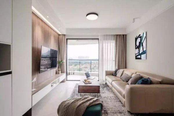 客厅低饱和度的白色、木色、奶咖色组合在一起素雅又高级。简洁轻松的装修,营造出舒缓的居家氛围,适合快节奏的生活方式。