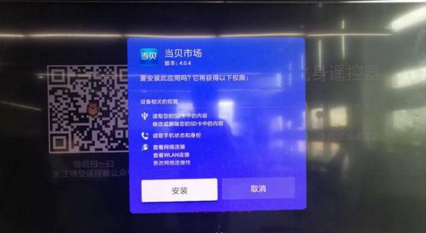 在手机端的悟空遥控器中搜索下载当贝市场,点击下载到电视后,即可在电视中看到下载当贝市场的提示,确认安装即可完成。