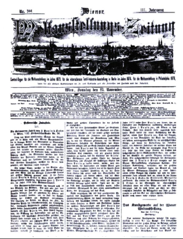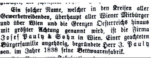 (1873年11月23日的报纸上刊登出一则新闻,说明了Pauly公司成立于1838年,并从那时起开始一直生产床具。)