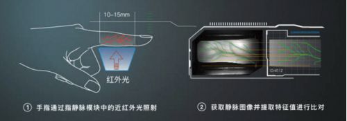 指静脉识别技术的原理是采用波长700—1100nm的红外光照射手指,手指内部静脉血管里的血红蛋白会吸收部分红外光,从而绘制出指静脉的图像。然后将图像数字化,并做特征提取,与已经记录的指静脉图像比对,完成识别过程。指静脉识别技术的关键是利用了流动血液中的血红蛋白对红外光的吸收作用,是真正活体检测。