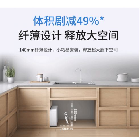有孩子的家庭,多多少少都会被一个问题困扰:厨房里除了日常厨具,还有孩子的榨汁机、辅食机、破壁机……原本就不大的厨房已经被这些小家电占去了大部分空间,想要安装净水器,空间是个问题。而沁园小白鲸采用了超薄机身设计,厚度只有140mm,甚至比iPhone XS MAX手机长度还短!比传统净水器体积减小了49%。纯白色的机身简洁大方,颜值在线。而且整机安装在橱柜里只占0.0574㎡的面积,为大家不够宽敞的厨房节约了不少空间。