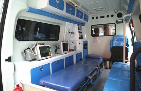 此次金手杖与王府医院合作,设立急救站,每天会有一辆急救车在站点值守,方便老人就医。急救车内,备有警灯警报器、心电监护仪、除颤仪、血氧监测仪、担架床、担架床、吸引器、车载GPS终端设备等医疗救助设备齐全,急救站内,急救药品一应俱全,共三组医护司人员9人及担架工4人,24小时轮流工作。