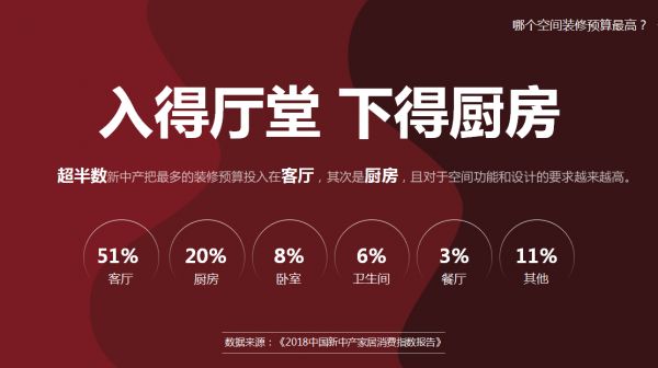 52368份调查问卷,从人群画像、家装预算、消费习惯、消费趋势等多个维度,勾勒出中国新中产家庭家居消费真实诉求,为制造端提供了具有深远价值的指导意见。