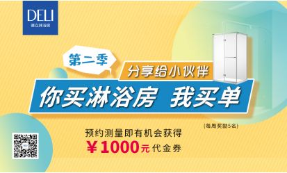 你买淋浴房我买单 预约测量即有机会获得德立1000元代金券