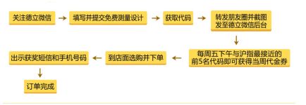 本次采用与沪指挂钩抽取方式。即每位关注德立微信服务号,填写并提交免费测量设计,即可获取专属“代码”。每周五下午三点沪指收盘后,最接近沪指的前五名代码用户,即可获得千元代金券。每周五下午三点后在德立微信公众号公布当天股指及当周获奖名单。