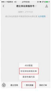点击微信菜单中的“预约测量”——“你买淋浴房我买单”——进入报名页面,提交报名信息——获得专属代码,转发链接至朋友圈——朋友圈截图发送至德立微信服务号,报名成功——每周五下午三点后公布中奖结果!