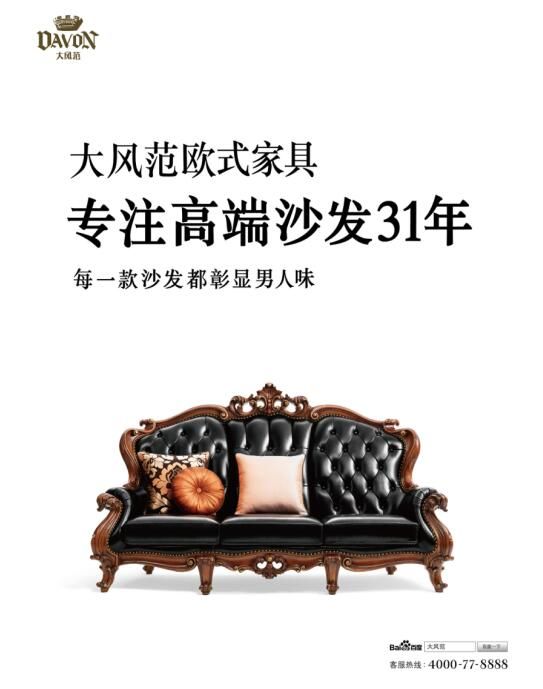 大风范欧式家具成立于1988年,作为中国欧式古典家具产业基地玉环的家具企业,在中国欧式家具行业,率先品牌定位“大风范欧式家具,专注高端沙发31年,每一款沙发都彰显男人味”的品牌定位深入人心;在国内市场打造出中国欧式家具领先品牌同时,引领核心技术在科技创新上攻克涂装工艺技术难点,实现欧式家具水性涂装系统解决方案;企业管理引进中国德鲁克管理学院,打造出卓有成效的大风范团队学习型组织。