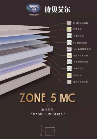 诗贝艾尔魔方系列Zone 5底层为独立单体床垫,延续诗贝艾尔传统“百年专注、分区承托”的理念,采用独特的“五区触感弹簧系统”、通过螺旋竖列排序。配合平衡舒压层、释压承托层以及海绵边框、有效的解决分区床垫偏软的共性。为魔方系列“叠加”的特性提供强有力的底层承托。同时贝卡特羊绒面料的也能让Zone 5在单独使用时,给予您分区床垫应有的睡眠体验。