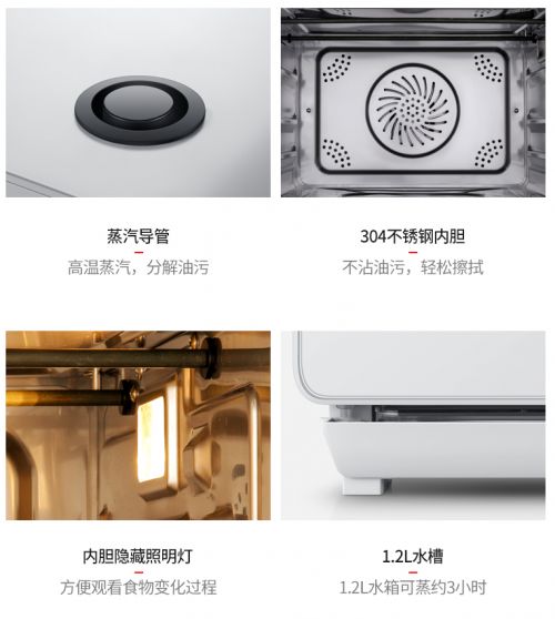 三层钢化玻璃门板,隔热防烫能力强,锁温防烫既有利于食材的成熟,又保障了使用中的安全性;这款蒸烤箱采用行业首创专利残留水回排技术,可以自动清洁,底部是隐藏式发热管设计,不用清洗发热管,从而为大家节约了清洗蒸烤箱的时间,带来最贴心的烹饪体验。