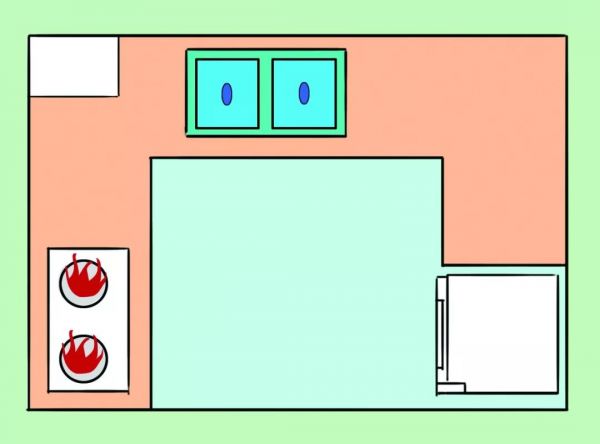 优点:可以形成良好的三角形的厨房动线,台面较多。