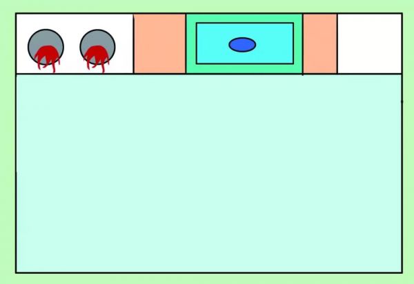 优点:清洁区、配菜区一边,烹调区另一边,分工明确。
