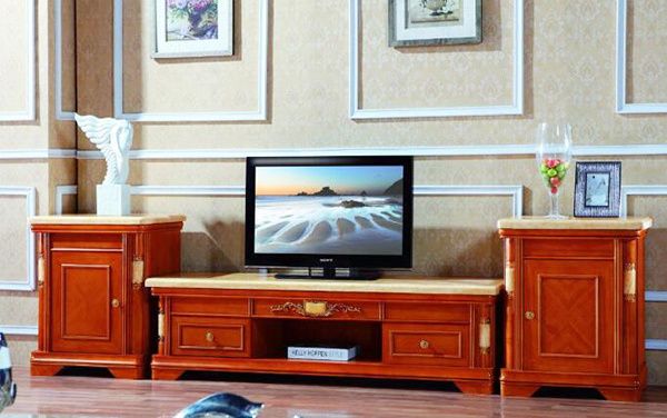运用实木制造电视柜板材,风格多为古典型,外观给人古朴端庄感觉。通常价位较高,其门框为实木,以樱桃木色、胡桃木色、橡木色为主。