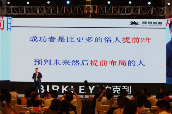 和君智业董事长张启峰为现场的经销商们解读了家居建材行业发展趋势,剖析了当前终端面临的困境,并现场提出了营销新策略、新干法、新武器。张启峰董事长表示,未来将助力赋能柏克利的经销商,利用全方位的专业帮扶措施,将柏克利打造成为软装行业内最具影响力品牌。
