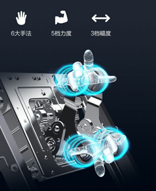 除了机械手按摩之外,RT6812按摩椅还配备了全身气囊进行波浪式挤压按摩,气囊根据人体工学设计,合理分别在肩部、手臂、小腿、脚部等部位,使用的时候还可以自由调节气囊力度并控制特定部位气囊的开关。值得一提的是手部采用了球面凸点设计,能更好地贴合手部,并内置了磁石,让按摩效果更加出众。