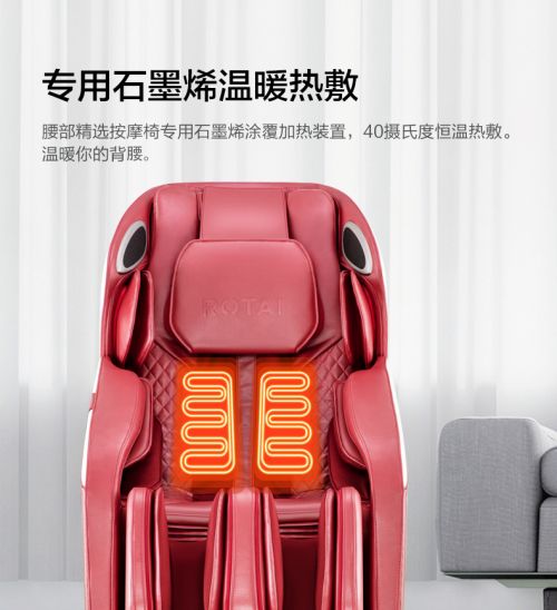 此外,作为苏宁平台主力新款按摩椅,RT6812在功能上也不遑多让,体型检测、零重力、泰式拉筋、蓝牙音乐、韵律按摩、腿部伸缩、USB接口等功能应有尽有。另外,秋冬季节就要到了,荣泰RT6812按摩椅腰部还精选了石墨烯涂覆加热装置,能保持40℃进行恒温热敷,腰背暖暖的很舒服。