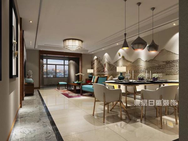 在细节上运用光影的结合,来契合整体空间的中式韵味。餐厅在配饰的搭配上非常用心,不管是桌椅的选择还是灯饰的搭配,整体看来都显得非常的温馨。