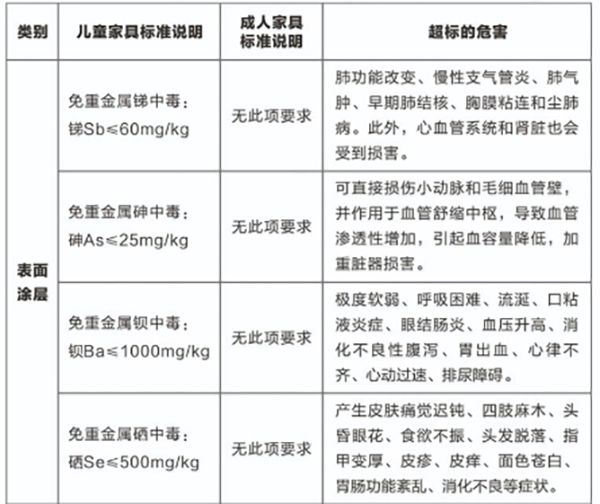 国家为保障儿童健康和对成人家具标准进行区分,2012年就出台强制标准《儿童家具通用技术条件》,该标准在《室内装饰装修材料木家具中有害物质限量》基础上新增了对锑、硒、砷、钡4种重金属的限量标准,但由于消费者普遍对国标认识不清,眼花缭乱的产品,猝不及防的商家套路,让许多家长认为没有味也就没有甲醛,就可以放心使用。这种现象应该引起人们的高度重视,家具重金属危害不可掉以轻心。