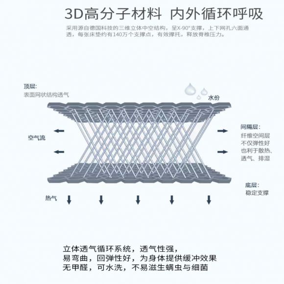 3D高分子材料层,每一次翻身,都带动循环气流,内层更干爽,