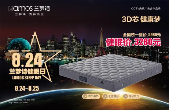 兰梦诗3D梦床垫,将于8月24-25日“824兰梦诗健眠日”活动期间在全国门店同步发售,心动价格,全国联动!