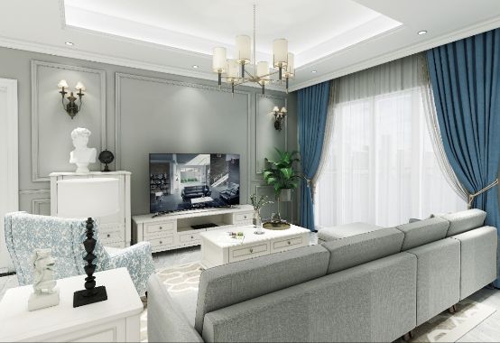 木槿庄园系列也是如此,只用简单的石膏线突出墙面的层次感,但却因为空间整体的色彩与主题风格显得客厅恬静淡然落落大方。