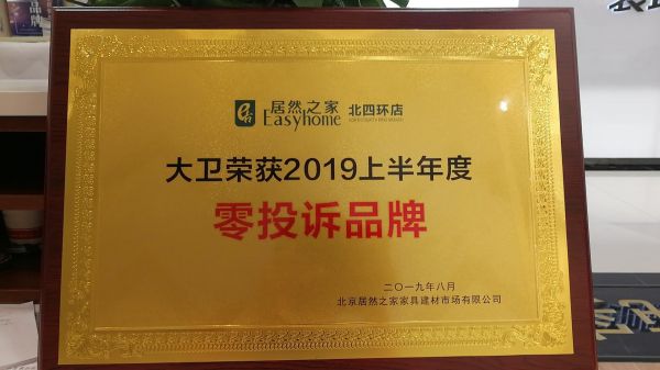 作为国内首屈一指的高端家居卖场,居然之家享誉大江南北!在这之中,能够创造一个店年销售超过50亿元的业绩,正是居然之家北四环店,“中国家居第一店”的美誉名不虚传。服务年,进取2019!此次荣获“零投诉品牌”无疑是对大卫品质与服务的强力注解,把品质视若生命,将质量当作责任,大卫始终践行“客户满意度是检验工作的唯一标准”!