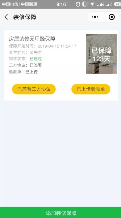 2019年4月10日,杭州戴先生于使用了无毒装修后,同样在验收房子的时候对其新房进行甲醛检测。