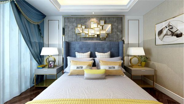 主卧的装饰从简单到复杂、从整体到局部,精雕细琢使各个小空间都过渡的非常自然、和谐。卧室以蓝色为主,看起来沉 稳安静。搭配简约的家具,让空间兼容华贵典雅与时尚现代,无不彰显这生活的富足安宁和业主对品质生活的追求。