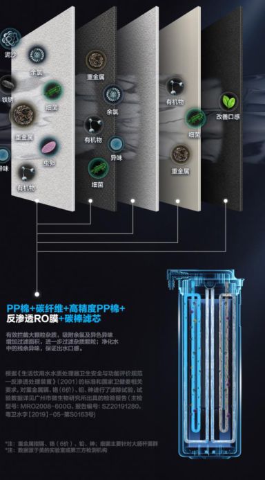 经过阿尔法的每滴水都要被五层过滤,第一层PP棉,第二层碳纤维,第三层高精密PP棉,第四层反渗透RO膜,第五层碳棒滤芯,层层拦截净化水体中含有的泥沙、重金属、铁锈、虫卵、细菌、余氯等有害物质,去除水中残余异味,让出来的水更甘甜。最终达到连老人小孩都能直接喝水龙头水的标准。