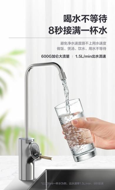 很多人纠结买不买净水机的原因就是觉得功能太单一,感觉就是专门为了喝水买一台设备。由于市面上大多数净水机是100G、400G的通量,出水量较小,只能满足日常喝水需求,若洗菜、做饭、煲汤、洗脸这些也都想用上纯净水的话,就有点供不应求了,往往需要等很久。