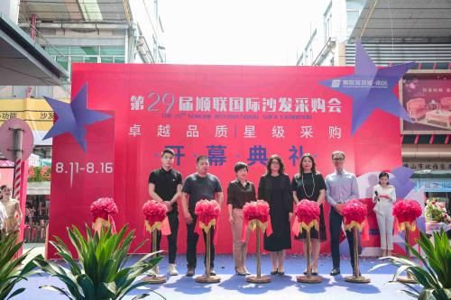 开幕仪式上,顺联集团总裁陈淑瑶女士、顺联家具城南区总经理窦珊女士、乐从镇家具城商会秘书长梁遂芝女士、鑫濠家居品牌联盟总经理邹文先生、杰辉家具总经理吴杰豪先生以及顺联集团企划总监姚晓东先生共同参与了本届展会的启动仪式。各领导嘉宾在欢庆的礼炮中共同剪彩,成功为第29届顺联国际沙发采购会拉开序幕!