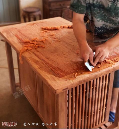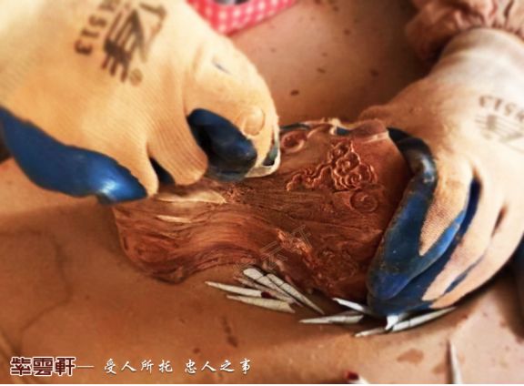 然后,精雕细琢。精雕是指紫云轩工匠对红木表面图案的细心雕刻,细琢则是用锉刀和砂纸反复刮磨,达到光润圆滑的效果。只有经过这一环节,才能有线条流畅、质感细腻的红木家具。无论雕刻还是打磨,紫云轩工匠皆是精益求精,用尽非凡匠心,为的便是成品上图案的活灵活现,精致质感。
